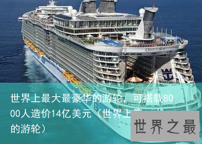 目前资料记载的世界上最大豪华游轮是海洋绿洲号,它来自皇家加勒比邮轮公司,长度达到360米,宽度有47米,可以容纳8000多人,造价达到14亿美元,体型是泰坦尼克的5倍,载客量可以达到6000人,是海洋量子号的1.5倍。