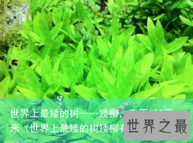 矮柳,生长在高山冻土带。它的茎匍伏在地面上,抽出枝条,长出象杨柳一样的花序,高不过5厘米。如果拿杏仁桉的高度与矮柳相比,一高一矮相差15000倍。与矮柳差不多高的矮个子树,还有生长在北极圈附近高山上的矮北极桦。与世界上最高的树杏仁桉比起来,一高一矮相关达1.5万倍。矮柳之矮,让人叹为观止。这种植物的茎一般匍匐在地面上,发芽抽枝后可以长出像杨柳一样的花序,然而虽同称为柳,但高矮实在差得太多。因此,大家给这个世界上最矮的树起了一个绰号,叫它“老勿大”。