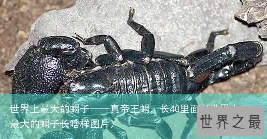 也许你看过电影《蝎子王》里面巨石强森饰演的大蝎子,其实蝎子、蜈蚣和毒蛇都是人类比较惧怕的几类动物,只因为他们一般都带有剧毒,世界上最大的蝎子,是真帝王蝎,最长的真帝王蝎可以达到0.4米,这可完全超出了我们平时看到的那种小蝎子。