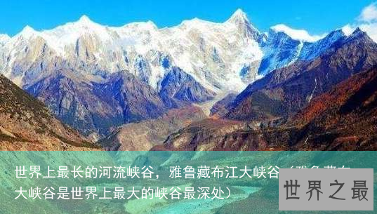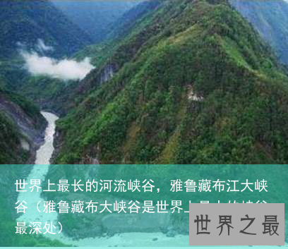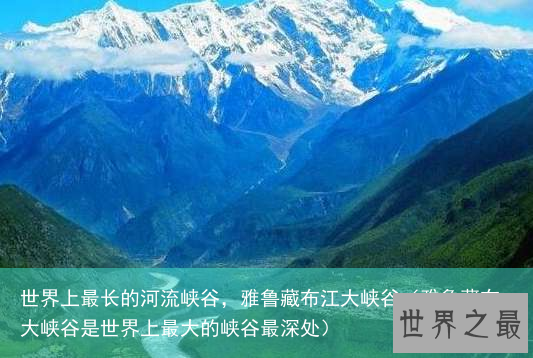 这个世界上最长的河流峡谷名叫雅鲁藏布江大峡谷,雅鲁藏布江大峡谷位于我国青藏高原之上。高峰与深谷咫尺为邻,近万米的强烈地形反差,构成了堪称世界第一的壮丽景观。这里许多地方至今无人涉足,被称是“地球上最后的秘境”之一。