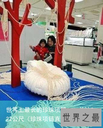 据日本《朝日新闻》报导,金氏世界纪录认定的世界最长珍珠项链,10 日起在日本大坂市北区的坂神百货展示。这条项链长达 222 公尺。这项展示活动将持续到 16 日,在此期间顾客将能欣赏到这条乳白色闪闪发光的珍珠项链。