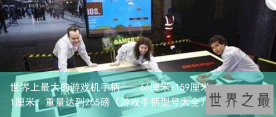 这个游戏手柄制造者Benjamin Allen, Stephen van’t Hof和Michel Verhulst在伦敦利物浦街车站展示了这个载入吉尼斯世界纪录的巨型游戏手柄。它的大小是一个标准NES手柄的30倍,其尺寸为366厘米x159厘米x51厘米,重量达到265磅!