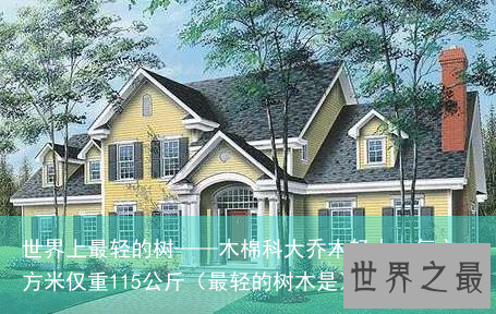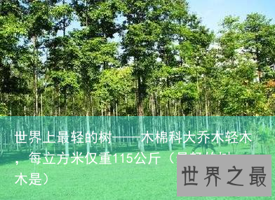 我们知道世界上最重的树是铁力木,每立方米重达1122公斤,那么,世界上最轻的树又是什么?原来是原产于美洲的木棉科大乔木轻木,每立方米仅重115公斤。一个正常的成年人可以抬起约等于自身体积8倍的轻木甚至更多。