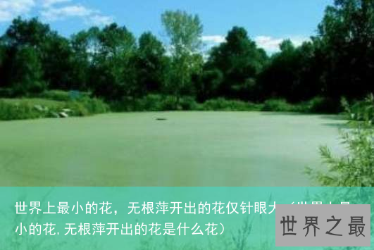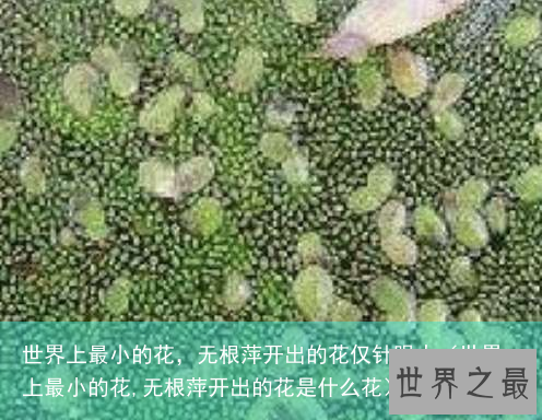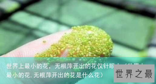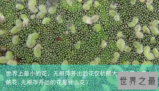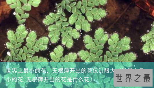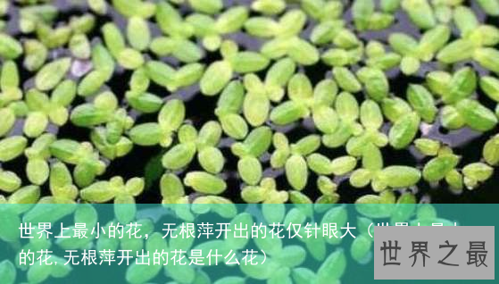 世界上最小的花是无根萍,它的外观像绿色的鱼蛋,身长不超过一公厘,开的花也只有针尖般小,正因为这样所以无根萍共创下了三个世界纪录:1、全世界最小的开花植物;2、全世界花最小的植物;3、全世界果实最小的植物。