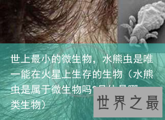 水熊虫曾在喜马拉雅山5546米处被发现过,它能在冰山、南极、温泉和深海4000米以下的地方生活,这些小家伙个子只有0.2毫米长,因为懒得动,因此得了个“耐力冠军”的称号。据科学家表示,水熊是目前人类所发现的唯一能在火星上生存的生物。