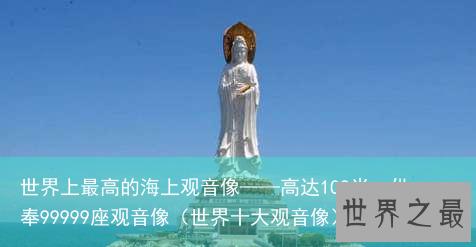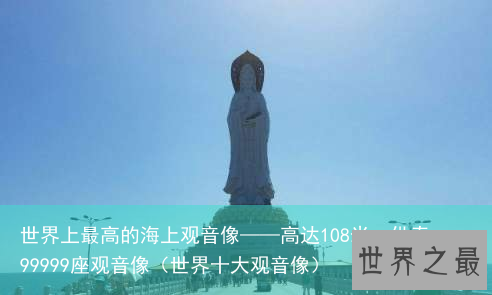 世界上最高的海上观音像是南山海上观音像,被人称为南海观世音,高达一百零八米,比美国的自由女神像还要高。世界上最高的海上观音像,仅观音像下的莲花宝座就高达十米,底座高达三十米,供奉99999座观音像。下面就来看看世界之最的介绍吧!