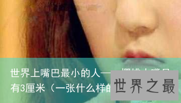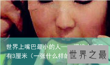 这名拥有樱桃小嘴的世界上嘴巴最小的人叫崔智善,经过韩国综艺节目主持人实际测量,她的嘴巴竟然只有3厘米,堪称世界上最小的嘴巴。崔智善表示,因为嘴巴非常小,所以张开嘴巴令她感到十分吃力,更不用说品尝份量十足的汉堡或是大块的饼干了。