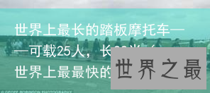31岁的英国Colin Furze 弄出来了一辆可载25人,长22米的摩托车。这也是目前世界上最长的摩托车。据说装满人该车仍旧可以正常行驶,不过速度不到35mph。感觉正常,并不是缓慢的爬行。