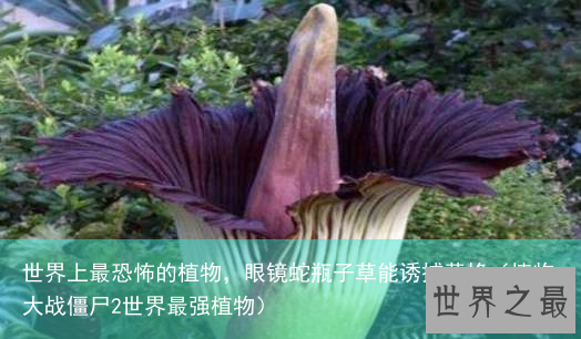 尸香魔芋因它的体型很大、气味很臭,所以人们给它起了很多外号,比如“尸花”“尸臭魔芋”“泰坦魔芋”。原产于印度尼西亚的热带雨林地区,花朵的直径长1.5米,高则将近3米。由于它的花朵发出的类似于腐尸的臭味,甚至在800米之外都可以闻到,所以被称作“世界上最臭的花”。尸香魔芋还是是世界上最大的花,一朵花可以高达3米,比世界上最高的人,2.72米的罗伯特·瓦德罗还高。而世界上最小的花是无根萍。