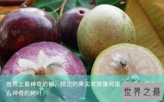 蛋树是美国培育一种多年生植物,其果实形如鸟蛋,味道鲜美。这种蛋形果,味似甜瓜,营养丰富,可做成冷盘或直接食用,因此很受人们的欢迎。尽管蛋树分布于欧美的一些地区,但它的祖籍却是中国,侵入中国的西班牙人把它带到欧、美,使它们在国外安家落户。