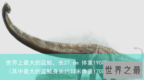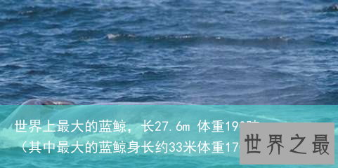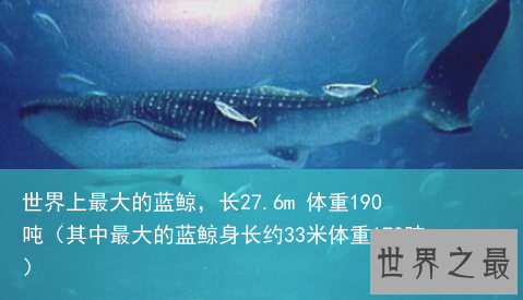 蓝鲸是世界上最大的鲸鱼,也是现存世界上最大的动物,一般体长为24米-34米。迄今为止,人类发现的最长的一头蓝鲸于1904到1920年间在南极海域捕获,长33.58m,体重170吨,发现的最重的一头蓝鲸于1947年3月20日在南乔治亚海域捕获,长 27.6m,体重190吨。