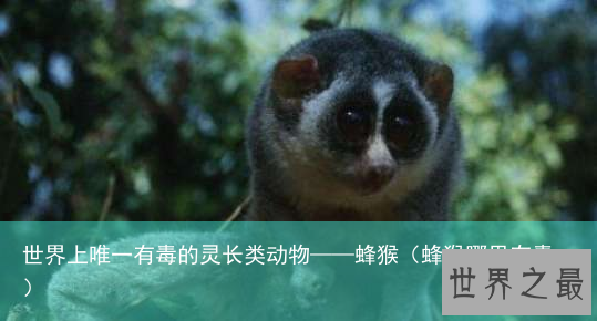 蜂猴因为喜欢吃蜂蜜而得名,体型非常小,外表很萌,其实是有毒的。不过并不致命,主要是为了保护自己不长寄生虫。蜂猴行动非常缓慢,因此又叫懒猴,平均挪动一步,大概需要12秒的时间,只有遇到危险时才会加快步伐。