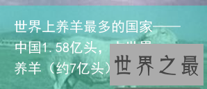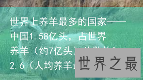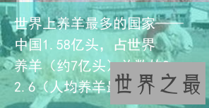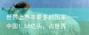 中国养羊甚多。主要分介于内蒙、新疆、靑海、西藏各省 区。著名优良品种有黄河下游的寒羊,陕西关中的同羊,宁夏的滩羊,江苏太湖的湖羊,新疆的库车羊、宁夏的中卫山羊。据1984年底统计,全国有羊1.58亿头,约占世界养羊(约7亿头) 总数的22.6%,是最大的养羊国。