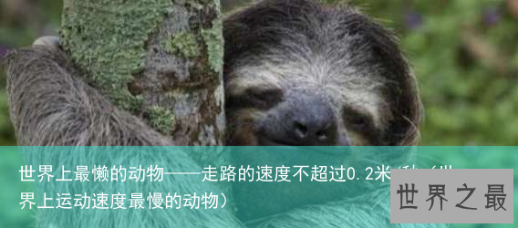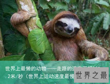 树懒是一种懒得出奇的哺乳动物,什么事都懒得做,甚至懒得去吃,懒得去玩耍,能耐饥一个月以上,非得活动不可时,动作也是懒洋洋的极其迟缓。就连被人追赶、捕捉时,也好像若无其事似的,慢吞吞地爬行。像这样,面临危险的时刻,其逃跑的速度还超不过0.2米/秒。