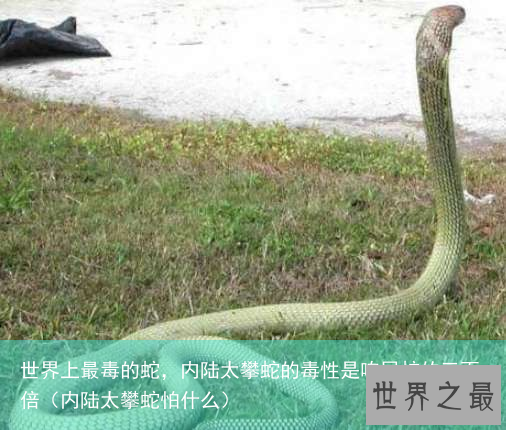 而内陆太攀蛇则比眼镜王蛇厉害多了,一次释放出来的毒液可以在24小时内杀死二十吨猎物,相当于25万只老鼠、一百个成年人或两只非洲大象。排毒量达到120mg-400mg,比响尾蛇的毒性要强烈三百倍。
