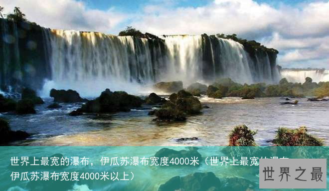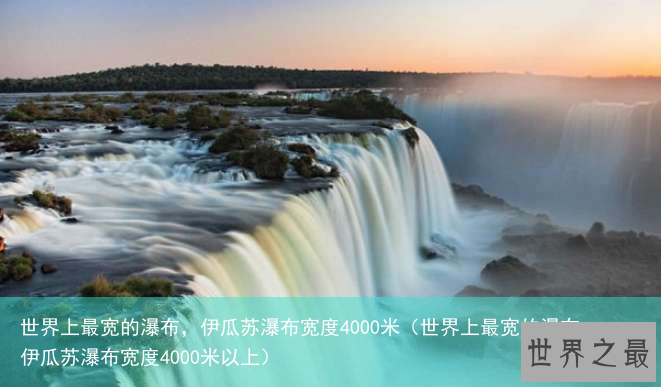 位于阿根廷和巴西边界上的伊瓜苏瀑布,被称为世界上最宽的瀑布,其宽度达到4000米,看上去非常宏伟壮观,它是世界三大瀑布中最宽的,其它两大瀑布是尼亚加拉瀑布、维多利亚瀑布。