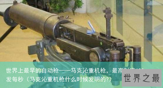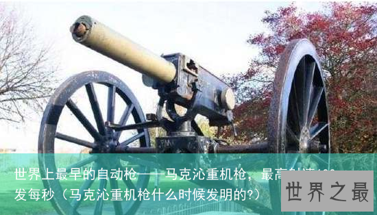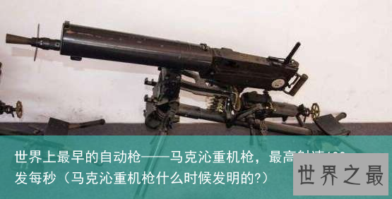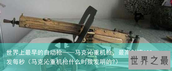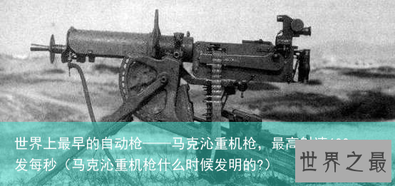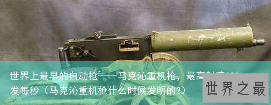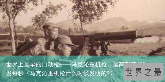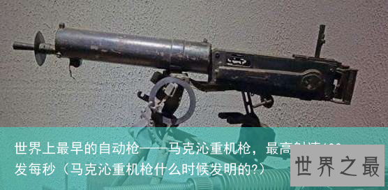 马克沁机枪是世界上第一种真正成功的以火药燃气为能源的自动武器。马克沁重机枪为英籍美国人海勒姆·史蒂文斯·马克沁于1883年发明,并进行了原理性试验,1884年获得专利。马克沁重机枪理论射速 600发/分,可以单、连发射击;也可以通过射速调节器调整为慢射速 100发/分。