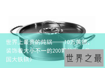德国菲仕乐炊具制造公司生产的这款圆形炖锅直径0.28米,锅身安有两个把手,锅身的把手和锅盖的把手由0.91公斤重的足金锻造而成,并且装饰着大小不一的200颗钻石,重量只比普通铝制炖锅略重。标价10万英镑。