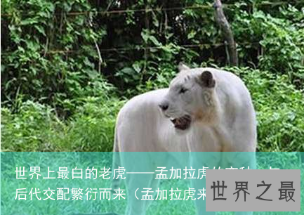 相信大家都见老虎的样子,所有的老虎基本上都是浑身黑色条纹、外加金黄色的样子,世界上还有另一种洁白无瑕的老虎,那就是纯白虎,世界上最白的老虎,估计大部分人都没听说过,但实际上纯白虎并不是老虎的一个分类,而是孟加拉虎的变种。