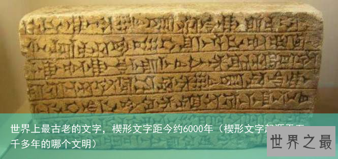 大多数的西方学者认为,楔形文字诞生于西元前三十一世纪左右,由苏美尔人所创,是已知世界上最古老的文字。这种文字的特点是笔划像楔子,因此而得名楔形文字。
