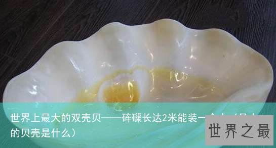 世界上最大的双壳贝是砗磲。砗磲的贝壳巨大且厚实,一般长1米,大者可达2米多,重250多千克,为双贝壳之冠。一扇贝壳比浴盆还要大,往往有人用它的贝壳当做浴盆洗澡。