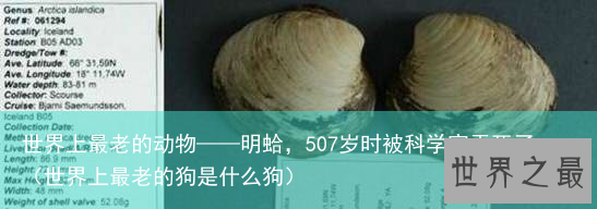 有一种叫做“明”的蛤类,经证实是世界上最老的动物,已经活了整整507年了。因为它们生存的时间正好处于中国的明朝,所以被叫做明。而可惜的是,这只明蛤最后却在科学家做研究室,不小心给弄死了。