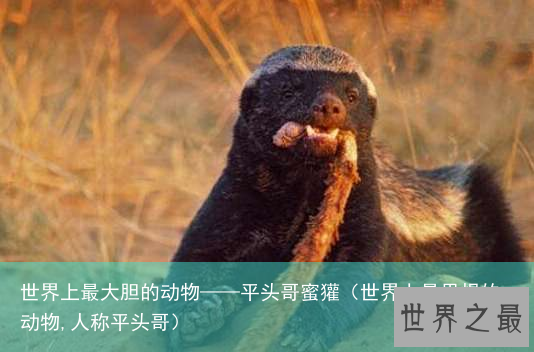 IUEF7_0.jpg" width="580" height="320"/>平头哥蜜獾通常在非洲和亚洲的南部和西部出现。吉尼斯世界纪录把它命名为“最大胆的动物”。它可是什么都敢吃的存在。平头哥表面看起来很可爱,实际上几乎会攻击所有东西,它很聪明能够知道敌人的弱点。例如,当面对的是一个男人它会攻击他的睾丸。它也是为数不多的使用工具的一种动物,例如用原木作为梯子。