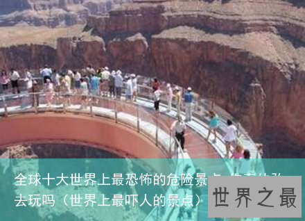 不论是哪一个景点,都有着壮阔的美景,但是要看到这些美景之前,必须要先练练自己的胆量,不然走到上面的时候一个不小心脚软,那后果真的不堪设想,真的有惧高症跟胆小的人绝对不要轻易挑战!赶快分享出去,让更多人看看吧!再次提醒大家哦,要是出去全球十大最恐怖的危险景点玩,虽然景点漂亮也要注意安全哦。