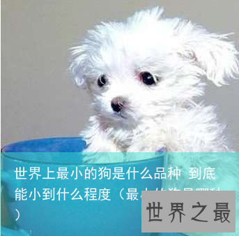 世界上最小的狗的品种是美国的茶杯犬,又名茶杯贵宾犬,是一种高级宠物犬。起源于美国,是一种宠物犬。体型在20厘米以下,体重低于2.7斤。微小茶杯贵宾犬(Tiny teacup poodle)体型更小,俗称“娇小”贵宾犬或“口袋”贵宾犬,标准是17厘米以下,体重低于2.7斤。