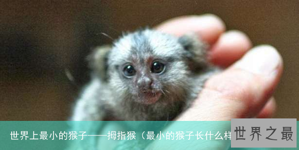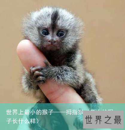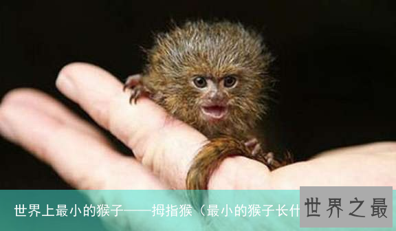 猴子是小朋友最喜爱的一种动物,你知道世界上最小的猴子是那种猴子吗?如下图所示,只有一个手指头大的猴子,拇指猴,就是世界上最小的猴子,下面一起来看看神奇的拇指猴。