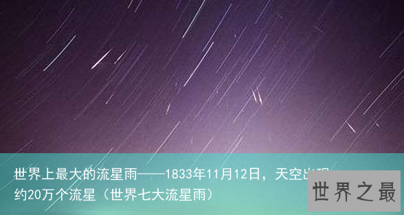 当地球在绕太阳运行的路程中,和流星群相遇,流星成群出现。如下雨一样,称流星雨。1833年11月12日晚上的几小时内,,天空出现约20万个流星,似漫天大雪,明如白昼,是为世界上最大最壮观的流星雨。