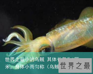 最大的乌贼称为大王乌贼,而分布在太平洋的世界上最小的乌贼叫细乌贼,其体长仅为1厘米,身体小而匀称,形状扁平。