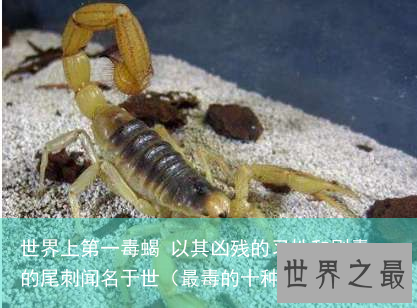 以色列金蝎是世界第一毒蝎,堪称以色列杀人蝎,死神的跟随者。以色列金蝎的毒性非常强,而且性情凶残,虽然注射量小还不至于致死,但依旧十分危险。并且以色列金蝎的行动非常迅速,常常会趁人不备出击,十分吓人。