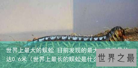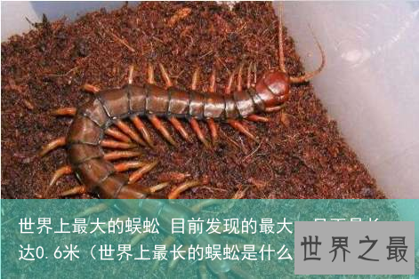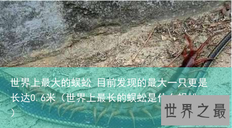 加拉帕格斯巨人蜈蚣就是目前在世界上所发现的最大蜈蚣了,平均体长在25-30cm之间,最大的32cm。曾经还有过报道称,在厄瓜多尔沿海地区有人是捕捉到过一只长达0.6米的超大加拉帕格斯巨人蜈蚣,不过此消息也尚未被证实了,就算消息是假的,凭借着记录的0.32米体长,任然会是蜈蚣中的霸王,被称为世界上最大的蜈蚣并不是浪得虚名的。