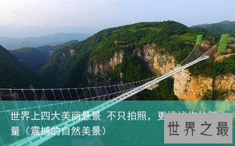 走在张家界天空步道上面,真的让人有想眩晕,尤其是恐高的人,建议还是不要走的好,笔者确实是有些怕啊,现在大家热门的拍照打卡景点,开始从美美的咖啡厅、食物照,转移到了大自然,为了照出风格独具,景色壮观的美景,无不挖空了心思找景点,不少的「悬景」纷纷出炉,今天整理出网友间热门讨论的四大美丽悬景,让你在拍照的同时,也能挑战你的胆量!