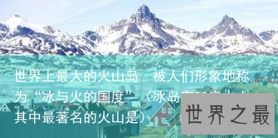 冰岛是欧洲运西部的国家,面积达10.3万平方干米.是欧洲的笫二大岛。也许你并不知道.整个冰岛是由位于其下方的大西洋中央海岭火山堪发而形成的,冰岛是因为火山运动升上来的岛屿。一亘到今天,这里的火山运动都没有停止过:1963年-1967年.冰岛西南库的火山活动就形成了一个约2.1平方干米的小岛。