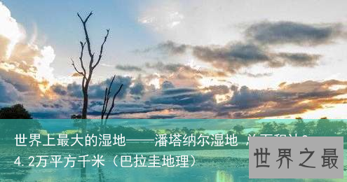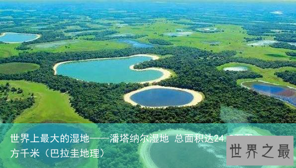 潘塔纳尔湿地是世上最大的湿地,地势平坦而轻微倾斜,有着曲折的河流。位于南美洲巴西马托格罗索州及南马托格罗索州,湿地部分在玻利维亚及巴拉圭境内,总面积达242,000平方公里。 潘塔纳尔在雨季时会泛滥,超过80%面积会被水淹没,是全球最丰富的水生植物集中地。