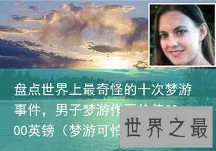 梦游在神经学上是一种睡眠障碍,症状一般为在半醒状态下在居所内走动,但有些患者会离开居所或作出一些危险的举动。梦游者似乎生活在一个私人的世界里,梦游的方式五花八门,既有寻常的,又有离奇的。以下所要为您列举的新闻事件,堪称“梦游”中的经典案例。