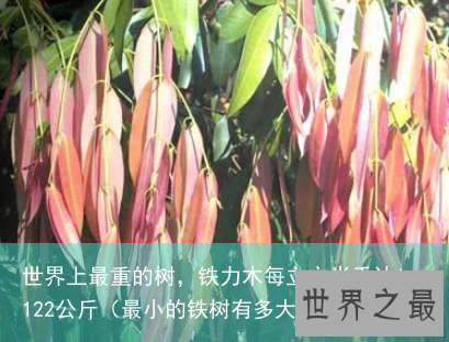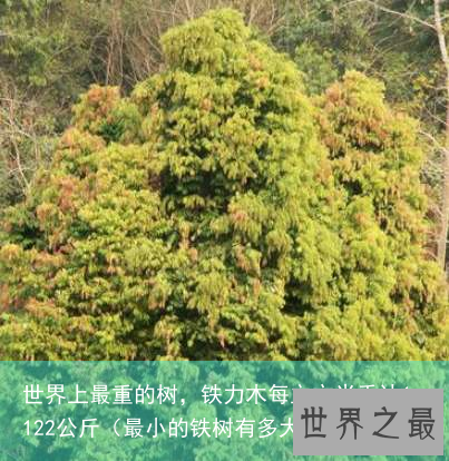 是什么树?我们知道世界上最古老的树是银杏树,没有之一,世界上最粗的树是百骑大栗树,也没有之一。世界上大树非常之多,那么,按照密度来说,什么树才是世界上最重的树? 不知道大家有没有听说过铁力木,又名铁梨木、铁栗木等。属侧膜胎座目,藤黄科常绿乔木。高20-30米,花两性,1-2顶生或腋生,直径5~8.5cm,花瓣4枚,白色,倒卵状楔形,长3-3.5厘米;果卵球形或扁球形,成熟时长2.5~3.5厘米,花期3-5月,果期8-10月。主要分布于中国云南、广东、广西、印度、斯里兰卡、孟加拉等地。所以说,世界上最重的树就是这铁力木了。