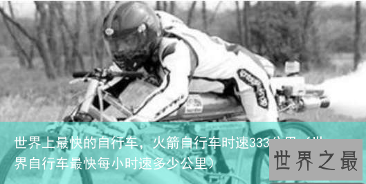 火箭自行车是目前世界上最快的自行车,在2008年的时候,以263公里每小时的速度,打破了在2002年242.6公里的速度,成为了世界上速度最快的骑自行车的速度。 在2013年的时候,经过改良后的火箭自行车又是以285公里每小时的速度刷新了由自己所保持的263公里的速度,成为自行车速度类的世界之最。