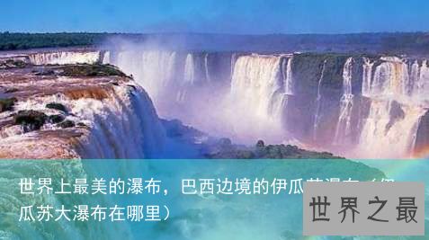 被公认为世界上最美丽的瀑布,伊瓜苏瀑布的确是自然的奇迹。美国的前第一夫人埃莉诺·罗斯福在见到这一瀑布之后,惊呼道:“尼亚加拉河太渺小了!”瀑布周围的地区给攀岩及水上运动留下了足够的空间。与世界上其他瀑布相比,伊瓜苏瀑布还有一卓尔不群的优势,那就是它的年径流是最大的。 世 界上最美的瀑布--伊瓜苏瀑布位于阿根廷、巴西、巴拉圭三国的边境。瀑布位于阿根廷的那边允许游客绕着水流走或者去探索国家公园。而巴西的那边则以其全景式的视野及其壮观闻名于世。