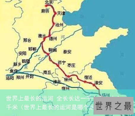 世界上最长的运河在中国地区,全长长达一千七百九十七千米,名字叫“京杭大运河”。京杭大运河的起点是杭州,终点是北京地区,中途经过了六个省份,也流经了这六个省份的二十个市区,这六个省份分别是天津、河北、河南、山东、江苏和浙江。京杭大运河把海河、黄河、淮河、长江和钱塘江联系在了一起。