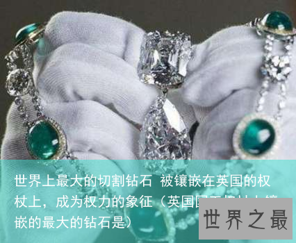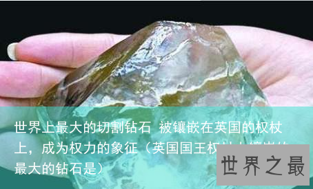 “钻石恒久远,一颗永流传”,钻石象征着纯洁的爱情,每个女孩子都希望自己结婚时候佩戴的钻戒越大越好!许多女孩子梦想着能拥有一颗“鸽子蛋”,可是世界上最大的钻石可是比鸽子蛋大多了,是一颗叫做库利南的钻石原石,大约有长年男子拳头难么大,库利南切割出来的“非洲之星”也是世界上最大的切割钻石了,还被镶嵌在英国的权杖上,成为权力的象征!
