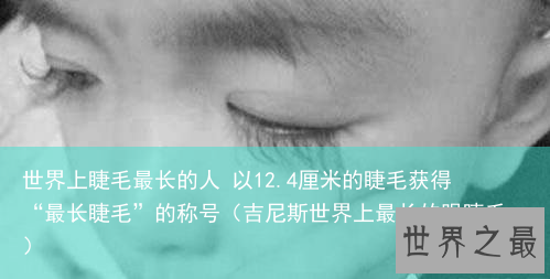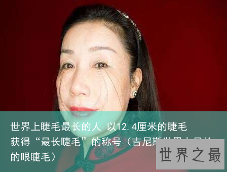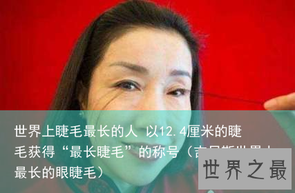 经过吉尼斯官方的测量,中国江苏女子尤建霞以12.4厘米的睫毛获得“最长睫毛”的称号,她的睫毛也并不是所谓的“截上去的”,而是自然生长的,实在是令人震惊。普通人的睫毛能长到2厘米都是非常长的了,她的却能长到12厘米之多,简直是逆天。