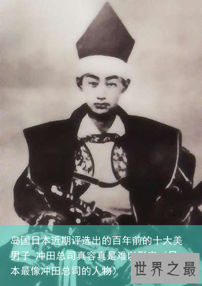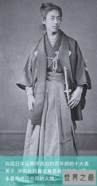 2.冲田总司,幕末的新选组队士、一番队队长。这是一位剑术了得的翩翩美少年,图像上右边那位,话说不怎么翩翩啊。而左边这个方脸小眼睛嘟嘟嘴的男人,是他亲戚家的少年,据说相貌跟他十分相似。反正我都没眼缘就是了。