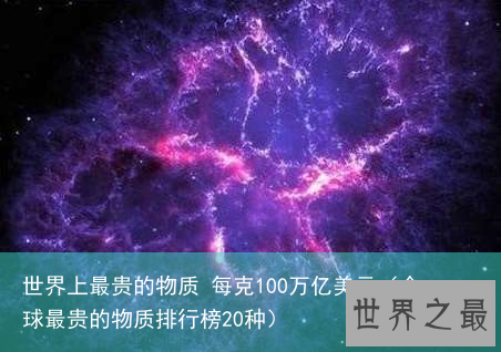 反物质。反物质是一种人类陌生的物质形式,在粒子物理学里,反物质是反粒子概念的延伸,反物质是由反粒子构成的。反物质和物质是相对立的,会如同粒子与反粒子结合一般,导致两者湮灭并释放出高能光子或伽玛射线。每克100万亿美元。未来,反物质可能被用作宇宙飞船的燃料。