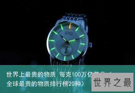 氚。氚是自然界的宇宙射线和上层大气间的作用,通过核反应产生的,因为它的作用很大,所以被人们运用到科学界乃至一些特殊的领域中去,人们利用它也制造出了一些有价值的物品,例如发光氚管,氚气手表等,价格为30000美元/克,换算成人民币大约19万每克。