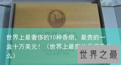 1、好彩特供烟。售价,10万美元/盒,烟盒由白金镀成,上面镶有一颗钻石和一颗红宝石,加上世界顶级烟叶。绝对称得上世界最贵香烟。