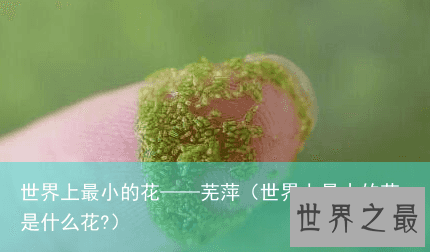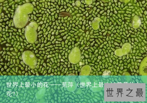 世界上最小的花,它的名字叫做芜萍,又被称为无根萍。无根萍是水生植物,属于单叶子植物,其实它是一种比较普遍存在的无根植物,广泛分布于各种池塘和稻田当中,只是人们大多数并不知道它的真名叫什么,不过很多地方往往把它们称为浮萍。无根萍大约有9到11个种类,薄薄的一层无根萍浮在水面上犹如一层玉米粉散在了水面之上一般,虽然雌雄同体,但是有着雌蕊和雄蕊之分,它们常常是成双成对地浮在水面之上。