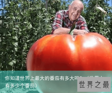 2015年美国明尼苏达州男子丹•马克科伊(DanMacCoy)日前培育出重达近8斤的番茄,打破吉尼斯世界纪录,成为截止到目前世界上最大的番茄,而此前纪录是美国男子戈登•格拉哈姆(GordonGraham),他在1986年培育出重约7斤的番茄,该记录一直保持至今。